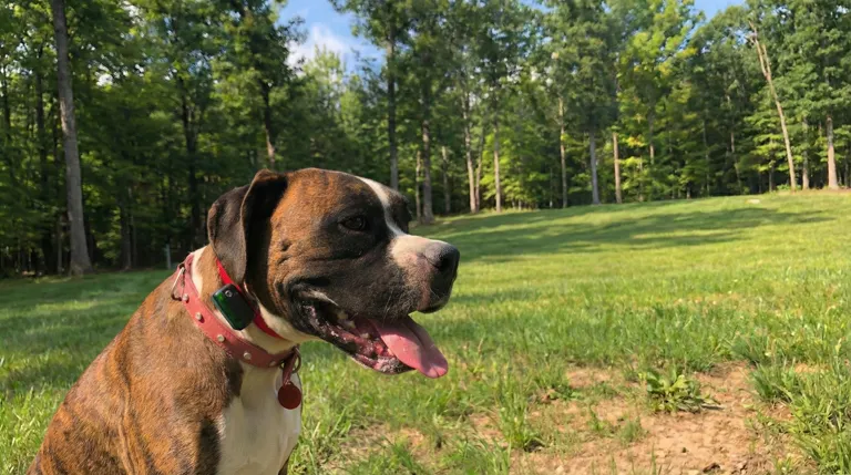 Typically 30–50 feet, depending on your phone, obstacles, and environment. It works through walls and across a normal yard. You need to be relatively close to your dog. It’s not a cellular or GPS system.
